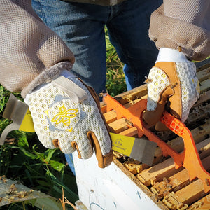 Our Apis Tactical Beekeeping gloves have a new type of mesh system that allows far more airflow to keep your hands cooler than any other glove.  More importantly, this mesh system maintains around 5mm of space between the bees and your skin.  Bees cannot sting farther than 3mm or so. Most other meshes are only 3 to 4mm and they compress easily to less than 2mm.  Remember that bees can still sting through the leather if it is tight against the skin and not moving... if you stay busy with your hands, bee stings should be rare with these gloves.