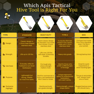 • Versatile & Reliable:Designed for various tasks, this hive tool excels at prying apart bee hive frames and scraping off excess wax and propolis. Whether you're a seasoned bee keeper or just starting out, the Apis Tactical Hive Tool provides the versatility needed to manage your bee hive tools with ease, making it an essential addition to your bee supplies