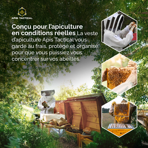 La veste d'apiculture Apis Tactical PRO est un nouveau design breveté qui redéfinit totalement ce que doit être une veste d'apiculteur. Elle est idéale aussi bien pour les apiculteurs amateurs que pour les professionnels expérimentés.